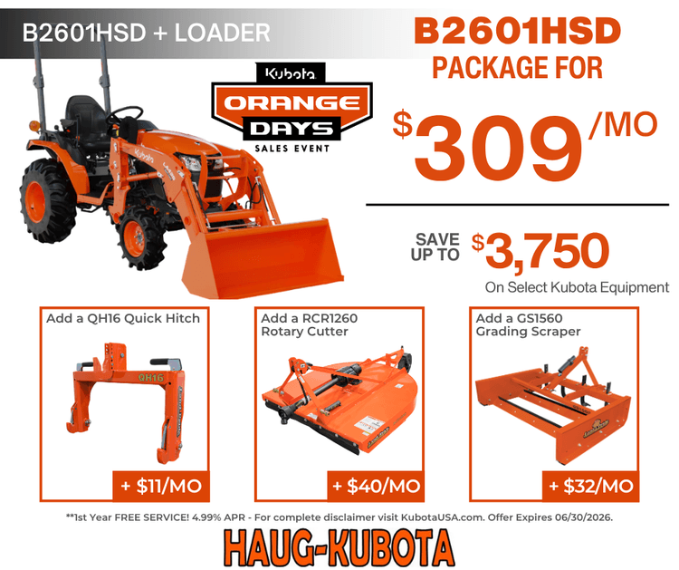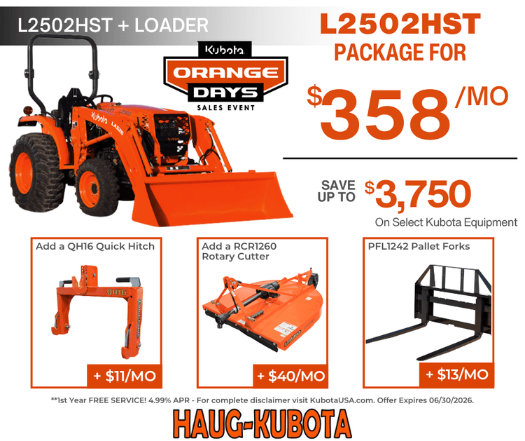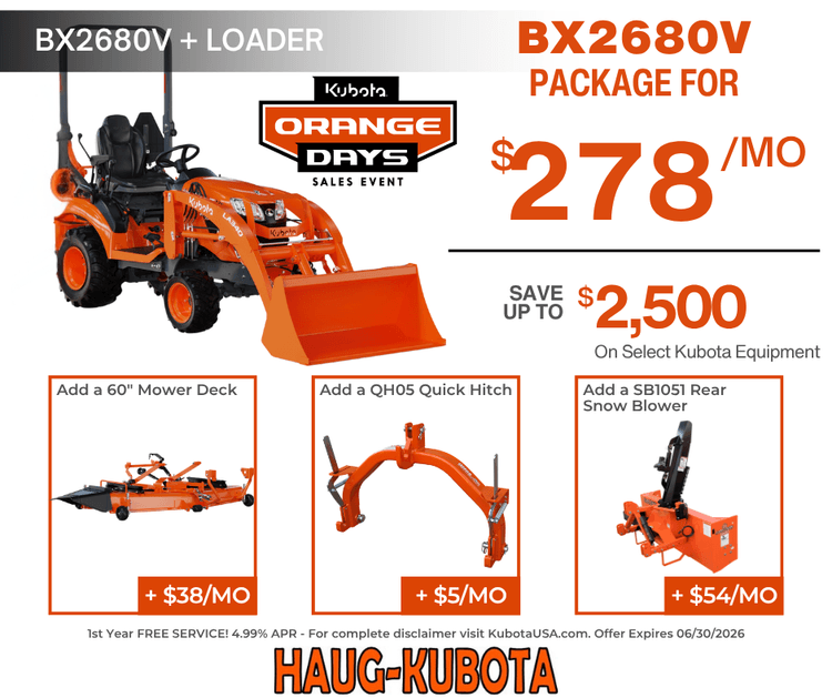 TAKE ADVANTAGE OF OUR EXCLUSIVE OFFERS ON SELECT KUBOTA PRODUCTS AVAILABLE AT HAUG KUBOTA!