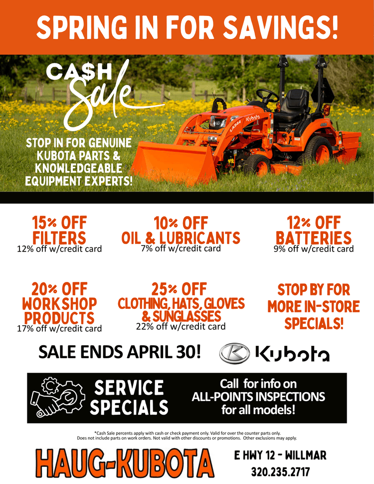 Spring into Haug Kubota for savings on Genuine Kubota Parts!