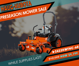 Meet the mower made for big jobs and longs days. The Kubota Z422KWTNC-60 brings power, precision, and a smooth ride to keep you going all season long. Stop into Haug Kubota to get yours during our preseason mower sale before it’s gone.